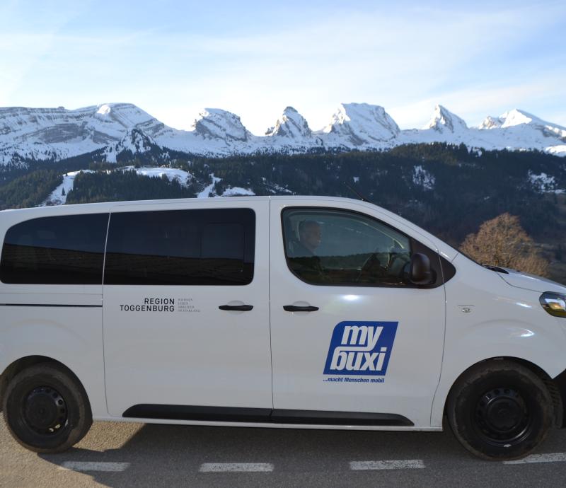 Der Fahrdienst auf Verlangen von mybuxi verkehrt seit Dezember 2023 als Pilotbetrieb in den Gemeinden Nesslau und Wildhaus-Alt St. Johann. Hinter dem Steuer sitzen freiwillige Fahrerinnen und Fahrer. Im Einsatz stehen elektrisch betriebene Siebenplätzer, die mit Zusatzausrüstung wie Kindersitzen ausgestattet sind.